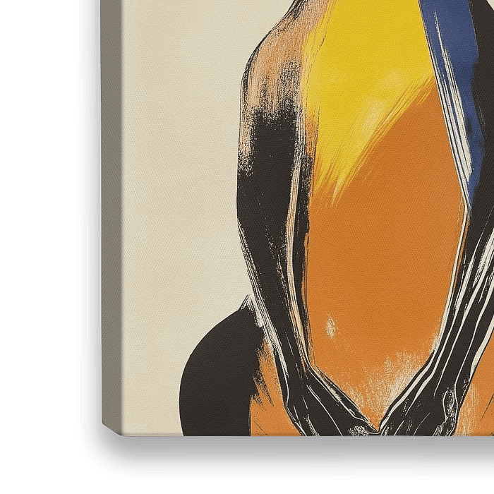 Abstracte Kangoeroe Met Kleurrijke Vormen - Op dit dieren schilderij zie je een kleurrijke kangoeroe met opvallende tinten geel, blauw, en zwart, die samen een modern en abstract beeld vormen.
