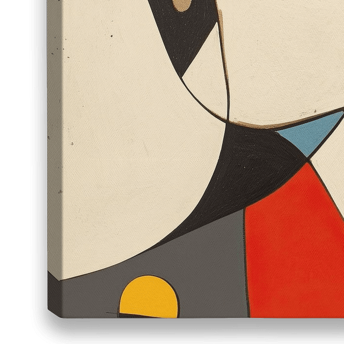 Details: abstract schilderij, geometrische vormen, moderne kunst, kleur, compositie, rood, geel, blauw, zwart, wit