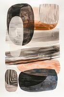 Dit werk speelt met overlappende vormen en een mengelmoes van texturen, wat een boeiende gelaagdheid creëert. De aardse kleuren, van diepzwart tot zacht beige, geven het werk een kalme maar krachtige uitstraling. Het zou goed tot zijn recht komen in een ruimte met een modern decor, waar het verschillende elementen kan verbinden en een…