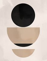 Minimalistische geometrische compositie met een sterke nadruk op vorm en balans. De voorstelling bestaat uit drie perfecte cirkels in een verticale alignering, waarbij elk deel een andere tint en grootte heeft. De bovenste cirkel is volledig en rijk van kleur, wat een gevoel van volledigheid en zekerheid uitstraalt. De middelste halve cirkel en de onderste kleinere boog creëren samen een gevoel van openheid en ruimte. Deze elementen zijn uitgevoerd tegen een neutrale achtergrond, wat bijdraagt aan de kalme en geordende uitstraling van het stuk. Het contrast tussen de volledige en de gedeeltelijke vormen zou kunnen wijzen op thema's als voltooiing en potentieel.