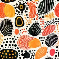 Het abstracte digitale schilderij de "Abstracte Schelpen op het strand" geeft een moderne en kleurrijke uitstraling aan uw interieur!