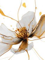 Koop dit abstracte kunstwerk Abstracte bloemvorm in wit en goud met vloeiende glazen lijnen van But First Framing op canvas, aluminium dibond, (ingelijste) fotoprint, behang en ArtFrame, op maat geprint in Fine-Art kwaliteit.