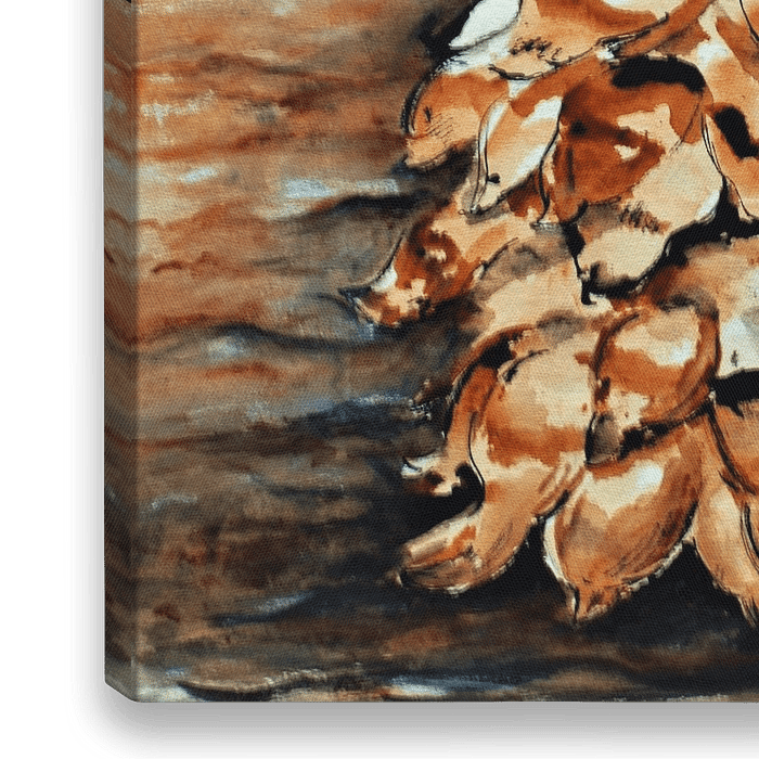 Dennenappel / Naaldboom / Bruin / Goud / Zwart / Schilderkunst / Tekenkunst / Ecoline inkt / Oost-Indische inkt/ Bos / Herfst / Stilleven / Landschap / Kegelvrucht /