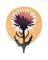 Een bloem in de zon in een minimalistisch-abstracte stijl, losjes gebaseerd op distels. Ik heb me vooral gefocusseerd op de stekelige natuur van de bloemen. De illustratie maakt deel uit van een serie van enkele bloemen, elk geïnspireerd op een echte bloem.