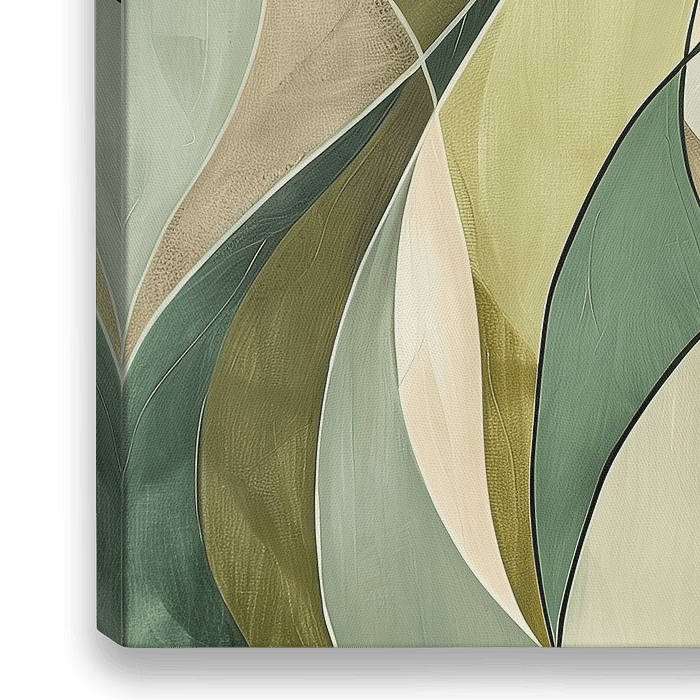 Ervaar de harmonieuze combinatie van zachte golven en natuurlijke kleuren in dit moderne kunstwerk. De lagen groen en beige creëren een diepe visuele textuur die een kalm en elegant gevoel toevoegt aan elke kamer. Ideaal voor woon- en werkruimtes die een ontspannen en stijlvolle sfeer willen creëren.