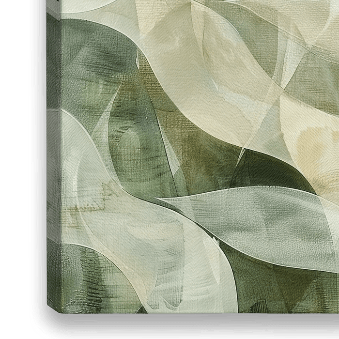 Dit kunstwerk maakt indruk met zijn vloeiende kleurverlopen in groen- en beigetinten. De vloeiende lijnen en het zachte kleurenpalet creëren een rustgevende en toch dynamische sfeer. Perfect voor moderne woonruimtes die een elegante en ontspannen sfeer moeten uitstralen. Ideaal voor woonkamers, kantoren en galerieën.