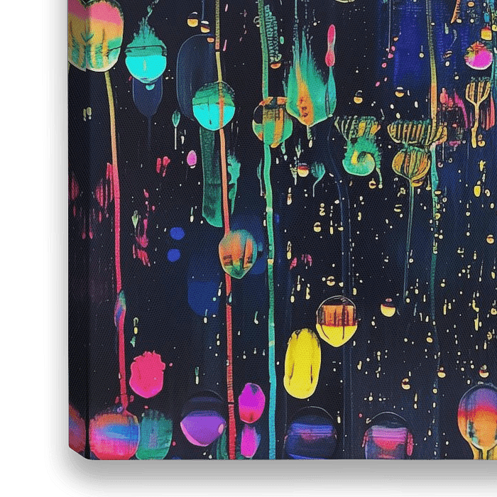 Abstracte neon regen schilderij die een prachtige aanvulling zal zijn in elke kamer. Met zijn unieke en stijlvolle uitstraling trekt het direct de aandacht. De schitterende kleuren en het bijzondere ontwerp maken dit kunstwerk 100% uniek en origineel. Het is de perfecte fotoprint om je interieur helemaal compleet te maken.