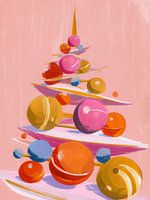 Over ‘Abstracte pastel kerstboom met kleurrijke ornamenten op roze achtergrond’ van But First Framing