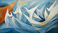 Abstracte zeemeeuwen kubisme panorama schilderij met een prachtige en unieke stijl die schitterend zal staan in elke ruimte. Dit kunstwerk is dankzij de prachtige kleuren en het stijlvolle ontwerp geschikt voor elke kamer. 100% uniek en origineel!