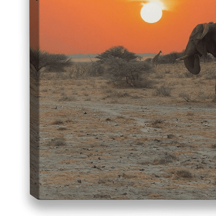 Een olifant staat voor de ondergaande zon in Etosha National Park.