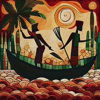 Het gebruik van acrylverf op paneel voegt diepte en dimensie toe, waardoor de levendige kleuren en texturen die in dit artistieke wonder zijn afgebeeld nog beter uitkomen. Keteleer's nauwgezette aandacht voor detail is duidelijk in elke streek, die je meeneemt naar het hart van Afrika's vissersgemeenschappen, waar de tijd lijkt stil te staan.