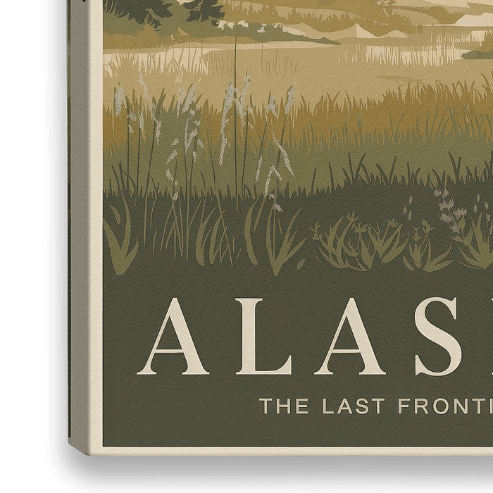 Majestueuze bergen, omringd door weelderige weiden en dichte bossen, nodigen je uit om te dromen. Deze nostalgische voorstelling van Alaska vangt de schoonheid van de natuur en het gevoel van vrijheid. Ideaal voor in de woonkamer om gesprekken te inspireren en een ontspannen sfeer te creëren. Een vleugje avontuur voor elke kamer.
