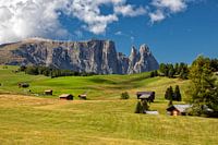 Uitzicht op de Alpe di Siusi en de toppen van de Dolomieten in de zomer.
