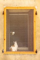 In een rustig straatje, waar de zonnestralen vriendelijk door de ramen drongen, zat een kleine kat in de comfortabele vensterbank van een gezellig huis. Met haar zachte vacht glanzend in het zonlicht, keek ze nieuwsgierig om zich heen.