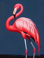 Nestel jezelf in de betoverende wereld van deze gracieuze rode flamingo, die schittert tegen een diep donkerblauwe achtergrond, een visueel spektakel van kleurcontrast. Dit meesterwerk is niet alleen een viering van natuurlijke elegantie, maar ook een indrukwekkende samenwerking tussen menselijke artistieke visie en geavanceerde kunstmatige intelligentie, waarbij technologie en creativiteit samenkomen om dit betoverende kunstwerk te creëren.
