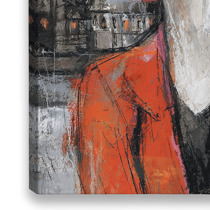Details: vrouwenportret, schilderij vrouw, rode jas, stad, moderne stijl, nacht, gezichten, moderne kunst, copy,…
