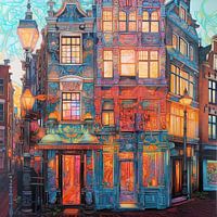 Schilderij Amsterdams Winkeltje Kleurrijk Bij Avond - Dit abstracte schilderij, getiteld Amsterdams winkeltje kleurrijk bij avond, is een prachtige impressie van de stad in kleurrijke tinten. Het is een kunstwerk dat je blij maakt vanwege de warme, kleurrijke sfeer die het uitstraalt. Het is een schilderij dat perfect past in je…