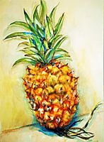 Koop dit stilleven Ananas. Handgeschilderd van Ineke de Rijk op canvas, aluminium dibond, (ingelijste) fotoprint, behang en ArtFrame, op maat geprint in Fine-Art kwaliteit.
