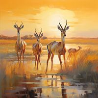 Unieke antilopen in savanne schilderij met artistieke stijl.