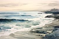 Breng de rust van de oceaan in je huis met dit prachtige aquarel schilderij. De krachtige golven en de serene kleuren creëren een gevoel van kalmte en harmonie. Perfect voor de woonkamer, slaapkamer of kantoor.