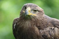 Een arend op een grasveld. De blik van roofvogels is ongelooflijk machtig. Het zijn dan ook hele krachtige dieren.
