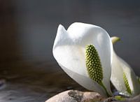 De schoonheid van deze plant is meestal niet de kolf met de piepkleine gele bloemetjes maar eerder het sierlijk gevormde bloemblad wat prachtig wit van kleur is.