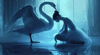 Koop dit digital art kunstwerk Aspiraties van een Jonge Ballerina: De Zwaan als Mentor van Karina Brouwer als reproductie op canvas, aluminium dibond, (ingelijste) fotoprint, behang en ArtFrame, op maat geprint in Fine-Art kwaliteit.