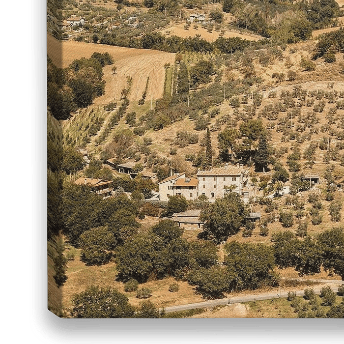 Panorama vanuit Assisi om de omliggende velden (Umbrië, Italië)