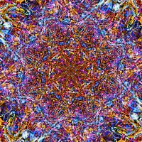 Een caleidoscopisch beeld in psychedelische kleuren, maar met rustgevende symmetrie, dat zijn leven begon als een foto van de weerspiegeling van herfstbomen in een vijver tegen een blauwe lucht.