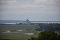 Uitzicht op Le Mont Saint Michel vanaf Jardin des plantes in Avranches. Vanaf hier heb je schitterend zicht op deze iconische plek, die hier een beetje mysterieus uit de nevelen tevoorschijn komt.