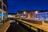 Avond in Diest, met zicht op Demer en het Stadhuis vanaf de kaai.