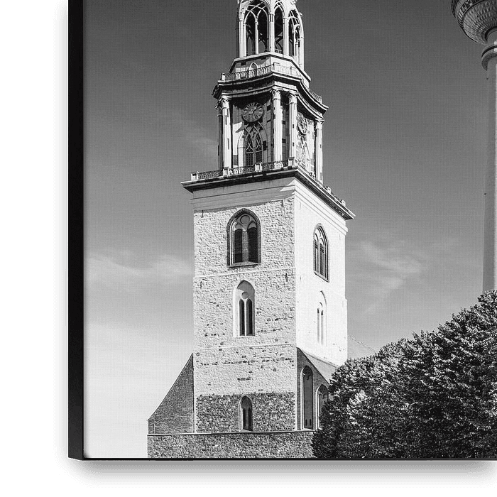 Koop de foto BERLIN Televisietoren & Onze-Lieve-Vrouwkerk | Monochroom van Melanie Viola op canvas, aluminium dibond, (ingelijste) fotoprint, behang en ArtFrame, op maat geprint in Fine-Art kwaliteit.