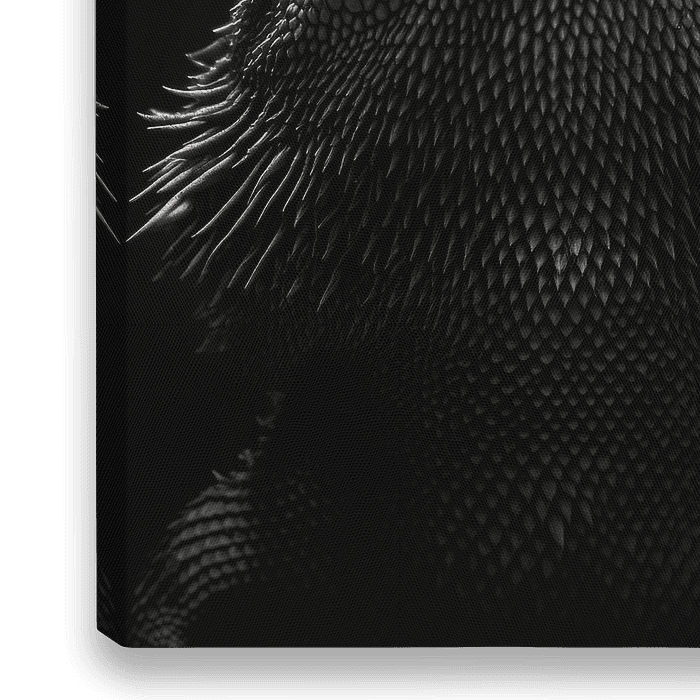 Een majestueus reptiel dat de kijker letterlijk naar binnen trekt met zijn indrukwekkende aanwezigheid. De iriserende schubben en doordringende blik geven het beeld een fascinerende spanning. Ideaal voor een moderne woonkamer of een creatief kantoor, waar het een gedurfde blikvanger is en een gesprek op gang brengt.