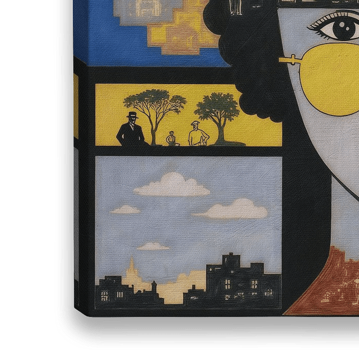 Deze collage laat de vele lagen van het leven zien.De vrouw in het midden springt erg in het oog en zet je aan het denken over jezelf en de kracht van ieder mens.Haar bril laat zien dat ze over meer nadenkt dan wat er te zien is, zoals de verhalen en gevoelens die ons maken tot wie we zijn.Achter haar ligt een wereld van verschillende…
