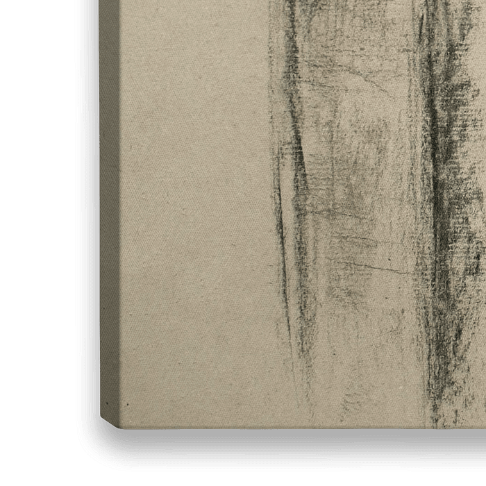 Houtskool en roodkrijt tekening op zacht grijs tekenpapier van een ballerina die uitrust na haar oefeningen. Een figuurtekening van een ballerina , haar lichaamshouding is met enkele lijnen getekend en hier en daar geven zwart en rood de schaduwen aan.
