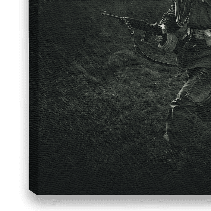 Beeld is gemaakt met een soldaat (re-enactment) en met losse foto's uit Normandie die ik zelf heb geschoten. Beeld bestaat uit 15 lagen Photohop die nu een beeld vormen.