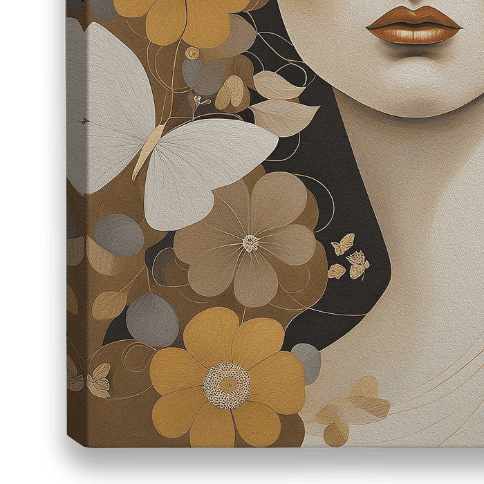 Dit opvallende kunstwerk, ontworpen als eyecatcher voor je huis, toont een elegant portret van een vrouw verweven met boeiende geometrische vormen en kleurrijke bloemen. Haar gelaatstrekken worden benadrukt door de strakke lijnen en vormen om haar heen, terwijl de bloemen een zachte en organische touch toevoegen aan het geheel. De…