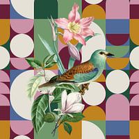 Collage met grafische vormen en vintage afbeeldingen. Een ongewone combinatie die uniek geslaagd is.