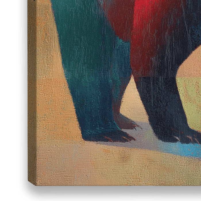 Beer Abstract - In dit dieren schilderij zie je een grote beer met levendige kleuren zoals blauw en rood, die modern en abstract zijn weergegeven, waardoor de beer opvalt tegen een kleurrijke achtergrond.