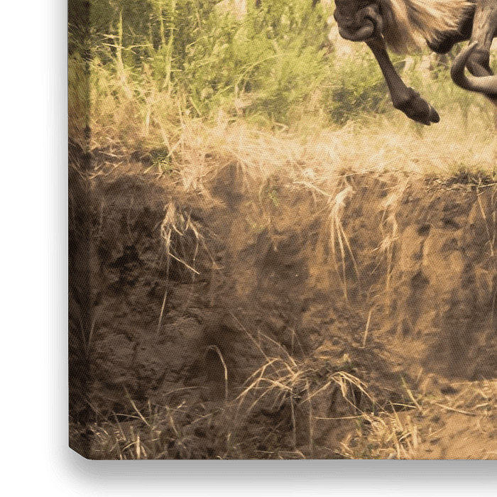 Gnoes migreren van Tanzania naar Kenia. In deze foto rennen zij richting de rivier om deze over te steken.