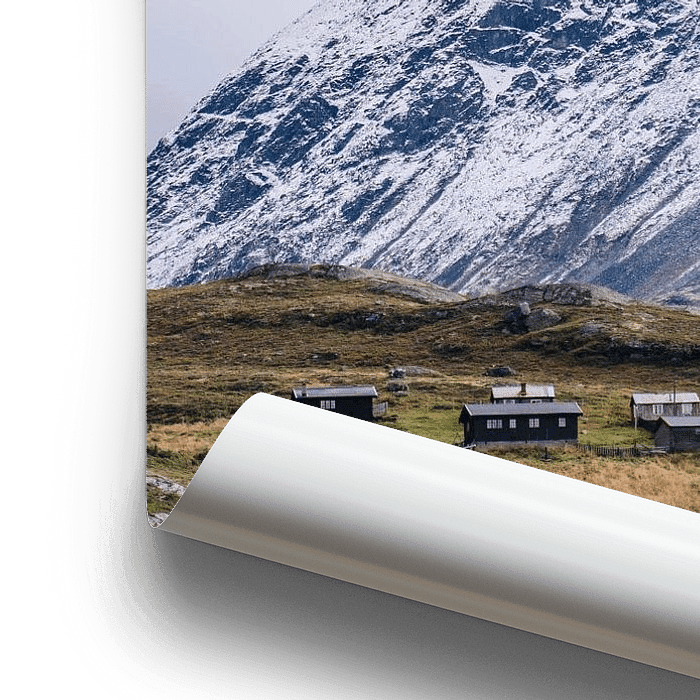 Bewonder de beeldschone bergen van Noorwegen in Scandinavië, gehuld in een adembenemend deken van sneeuw. Deze indrukwekkende foto vangt de rust en pracht van de besneeuwde bergen, waar de natuur haar meesterwerk heeft gecreëerd.