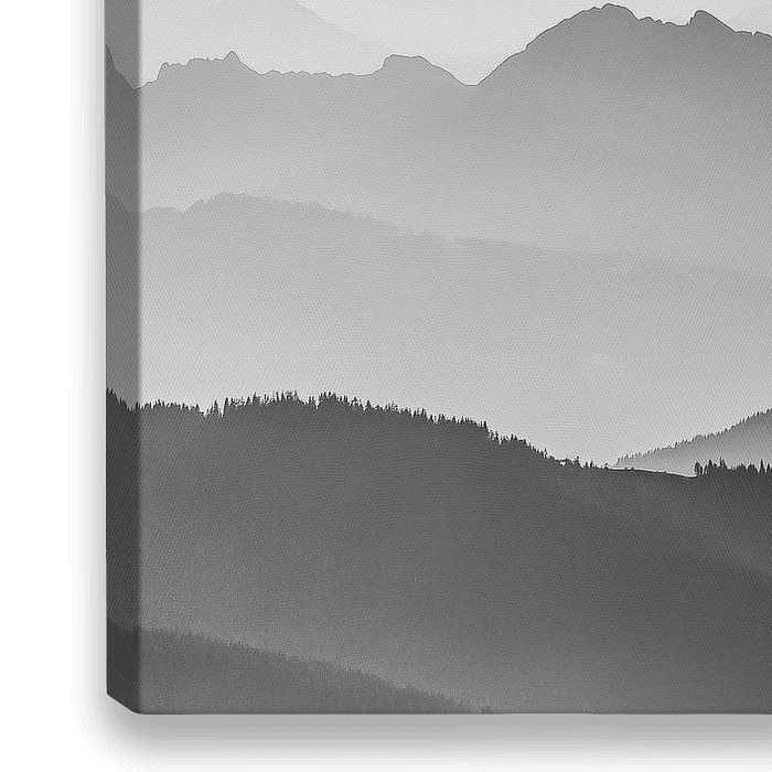 Tijdens een zonsondergang ontstaat wat mist waardoor de silhouetten van meerdere bergketens goed afsteken van elkaar. De bergen op de achtergrond zijn de hoogste toppen van de Hohe Tauern met Grossglockner en Wiesbachhorn.