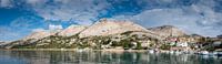 Berglandschap van Krk eiland, Kroatië. De haven van Baska ligt in een baai en wordt omringd door kale bergen.