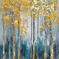 Berkenbos in de stijl van een schilderij met gouden kleuraccenten.
