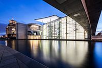 Koop de foto Berlijnse regeringswijk op blauw uur van Frank Herrmann op canvas, aluminium dibond, (ingelijste) fotoprint, behang en ArtFrame, op maat geprint in Fine-Art kwaliteit.
