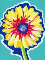 Kleurrijk schilderij van een bloem in felle kleuren.