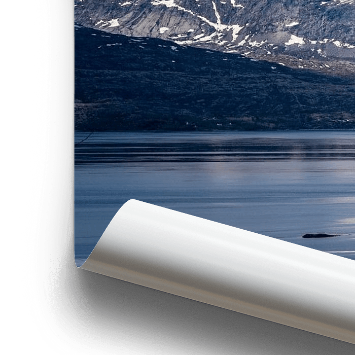 Besneeuwde bergen langs het fjord, Noorwegen