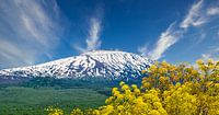 Besneeuwde zijde van de vulkaan Etna op Sicilië, in de lente.