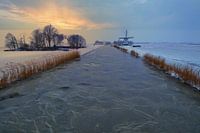 Links de Berkmeerdijk en rechts de Obdammerdijk met zicht op de Obdammer molen.Winter in de Berkmeer Bij Obdam.Dit is op de eerste sneeuwdag. Gewoon de fiets pakken en kijken wat ik tegenkom.