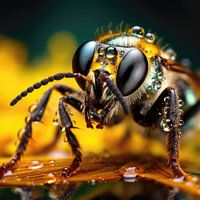 Digitaal kunstwerk van een bij in de stijl van een macro-opname